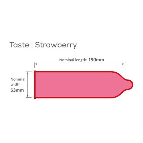 De Pasante Taste condooms hebben verschillende kleuren en smaakjes! De verpakking bevat de volgende condooms: 3 rode condooms met aardbeiensmaak, 3 bruine condooms met chocoladesmaak, 3 blauwe condooms met bosbessmaak en 3 groene condooms met muntsmaak. Alle condooms zijn vervaardigd en getest volgens de hoogste kwaliteitsnormen. De condooms zijn gemaakt van natuurlijk latex, voorzien van glijmiddel en een reservoir. Elk getest condoom is geschikt voor vaginaal, oraal en anaal contact, zolang de pasvorm goed is en er voldoende geschikt glijmiddel gebruikt wordt.